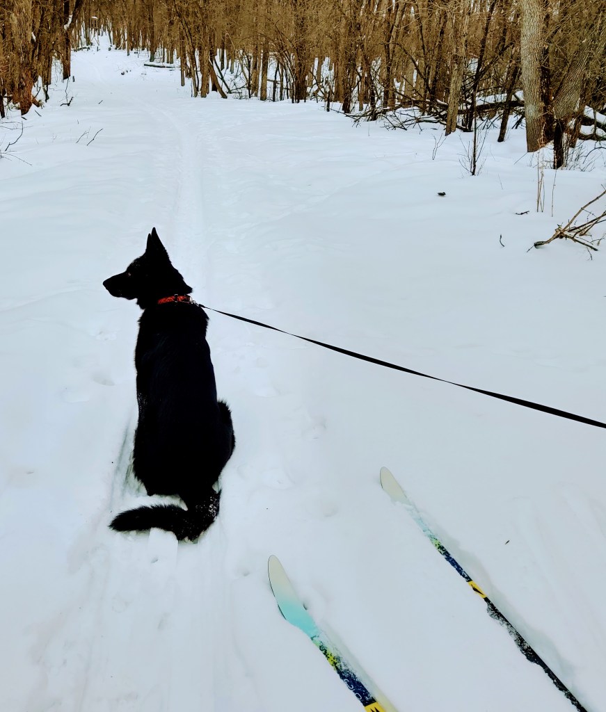 Have you ever heard of a leash? I don’t recommend them. It doesn’t let me do what I want to do! It makes me feel like even my people don’t understand that I know what I am doing! At least we all agree that we like to ski, so off we go, leash and all! I really like when you write to me. I’ll write again soon.