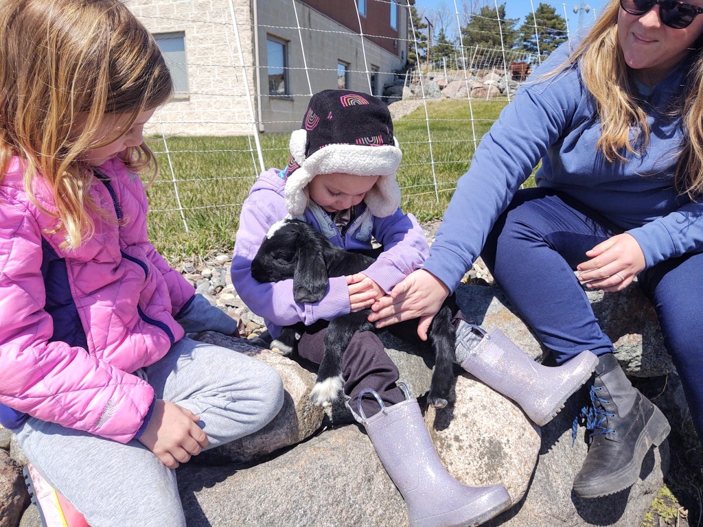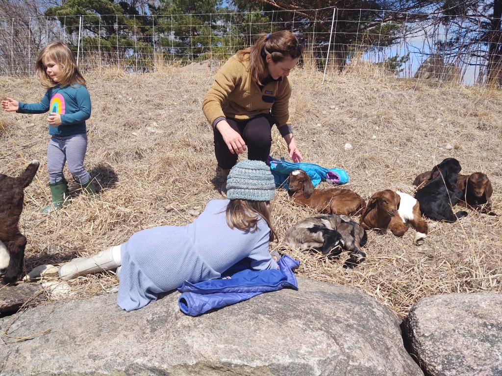 Hey everyone! It’s me, Roja, the blogging farm dog. I’m sorry I haven’t written, but being an adult dog comes with LOTS of responsibilities. Remember the GOATS? Well guess what? Now I am in charge of them. I didn’t need to watch them much over the winter, but now I hear that there’s KIDS arriving in a few weeks. Did you know that little goats are called kids, just like little humans are called kids?